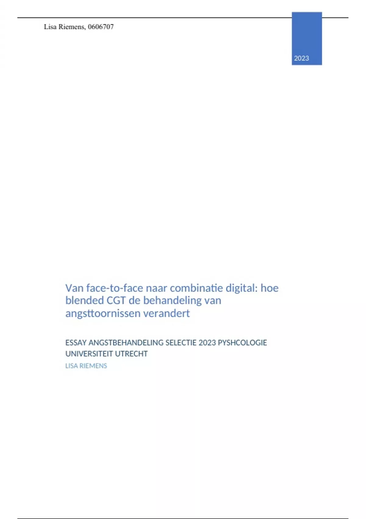 ESSAY ANGSTBEHANDELING SELECTIE 2023 PYSHCOLOGIE
