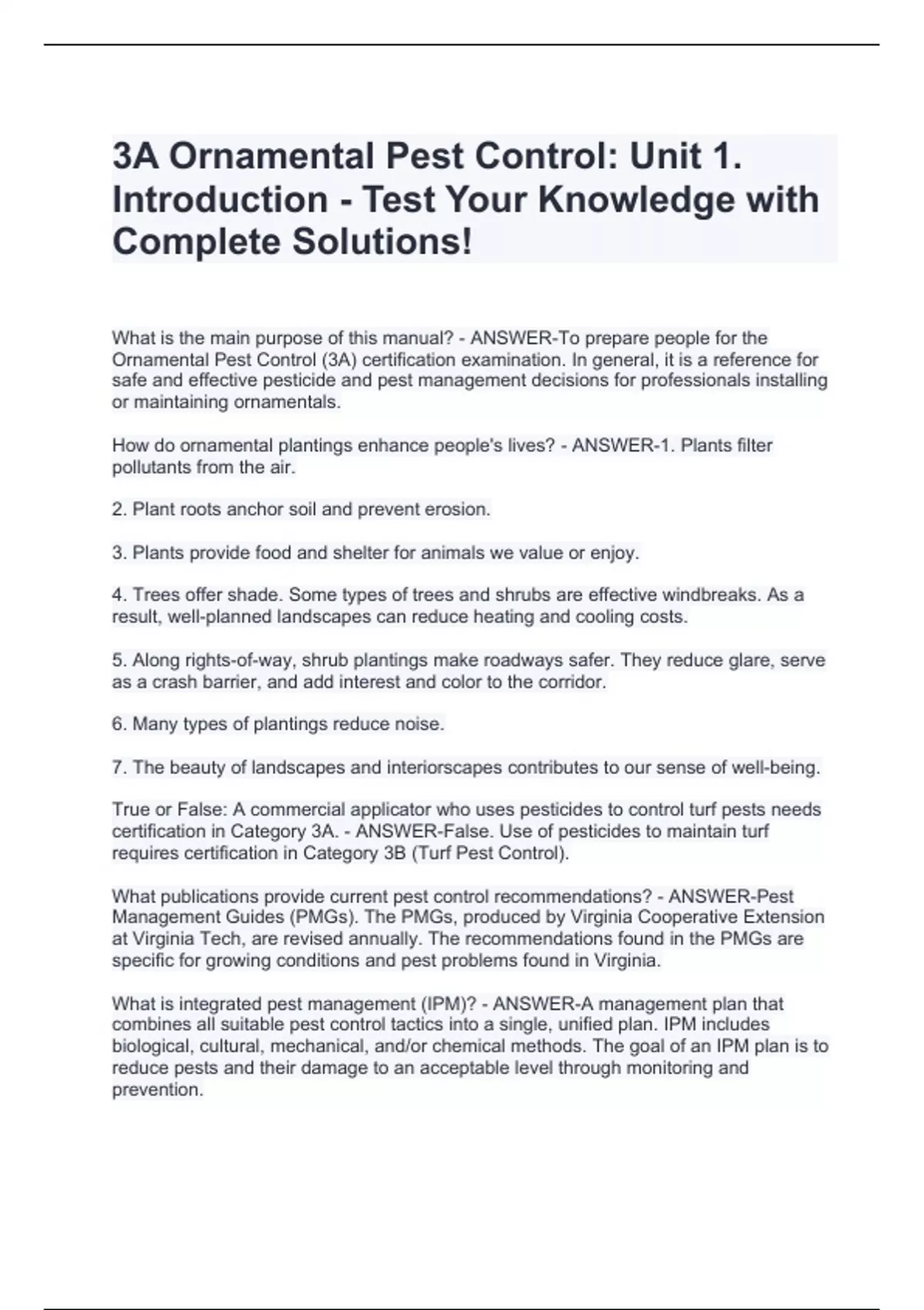 3A Ornamental Pest Control: Unit 1. Introduction - Test Your Knowledge with Complete Solutions!
