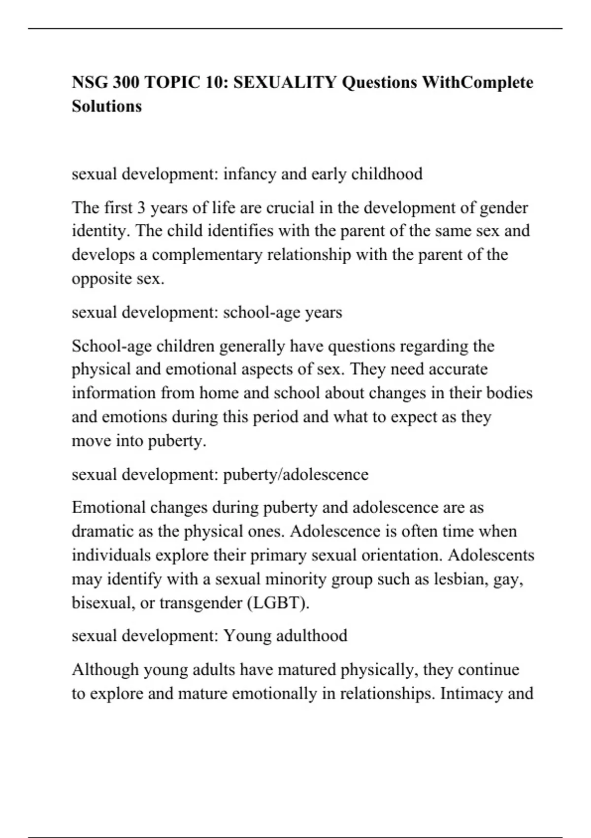 NSG 300 TOPIC 10: SEXUALITY Questions WithComplete Solutions