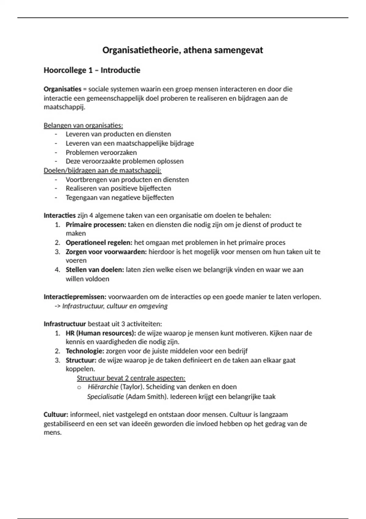 Organisatietheorie, athena samengevat