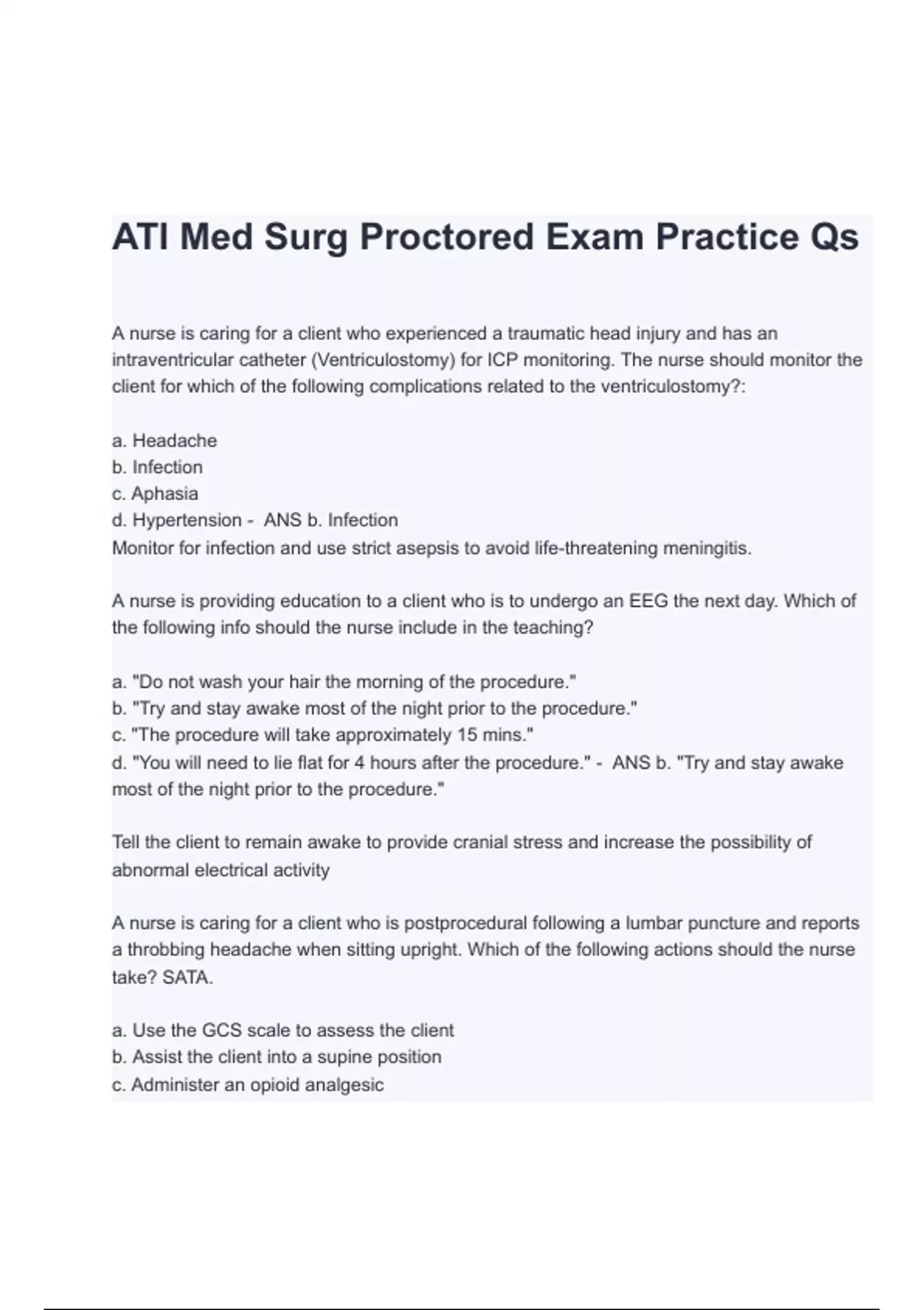 ATI MED SURG RN Proctored Exam Practice Exam Questions and Answers
