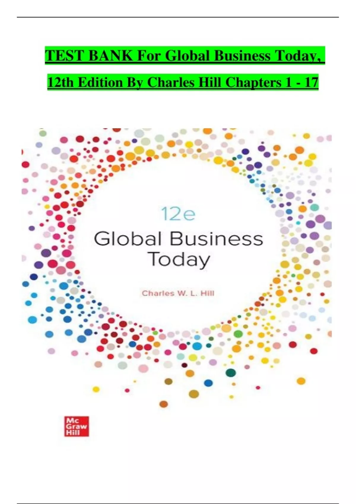 TEST BANK For Global Business Today, 12th Edition By Charles Hill, Verified Chapters 1 - 17, Complete Newest Version