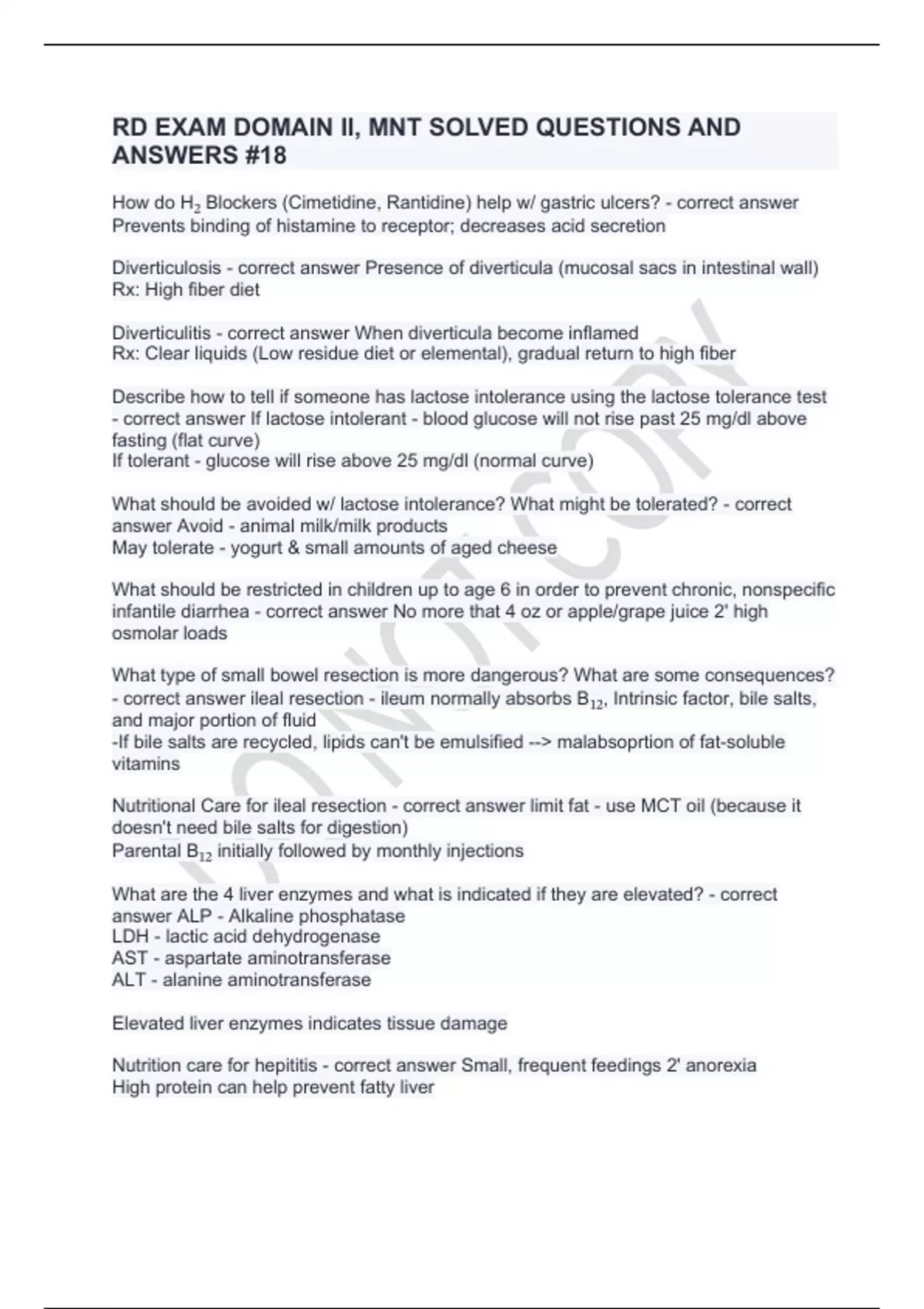 RD EXAM DOMAIN II, MNT SOLVED QUESTIONS AND ANSWERS #18