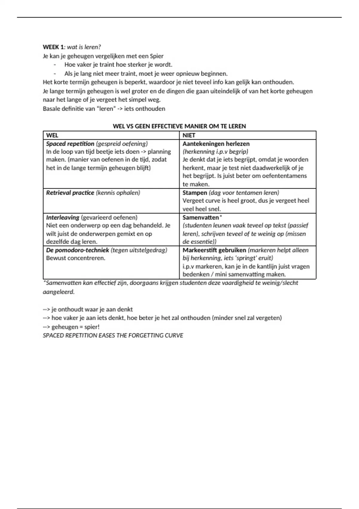 Spaced repetition (gespreid oefening) Aantekeningen herlezen