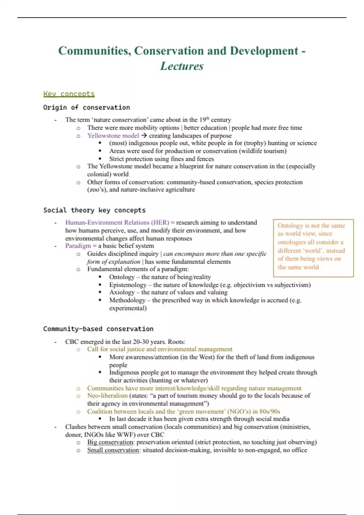 o Other forms of conservation: community-based conservation, species protection