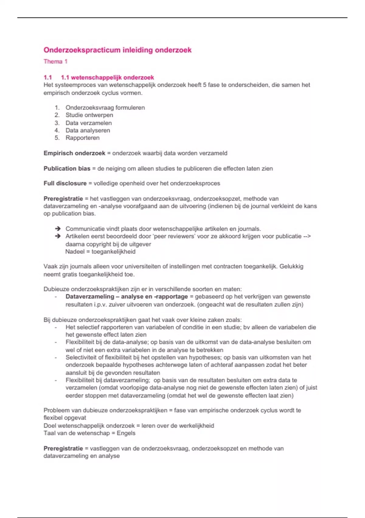 Dit is een samenvatting voor het vak Onderzoekspracticum inleiding onderzoek. Het boek dat is gekoppeld aan de samenvatting is het boek: Open Methodologie en Statistiek van de Open Universiteit. Wat mij verder heel erg heeft geholpen is het maken van de oefententamens. Neem deze goed door want ze komen erg overeen met het tentamen. Succes!