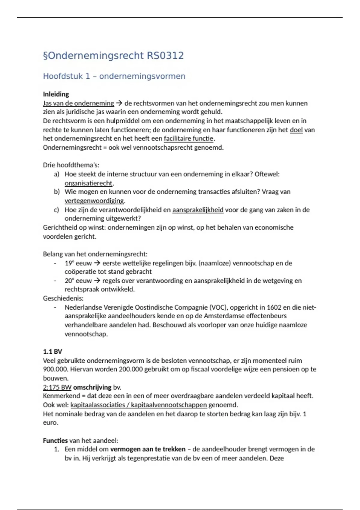 Uitgebreide samenvatting De kern van het ondernemingsrecht - Ondernemingsrecht (RS0312)