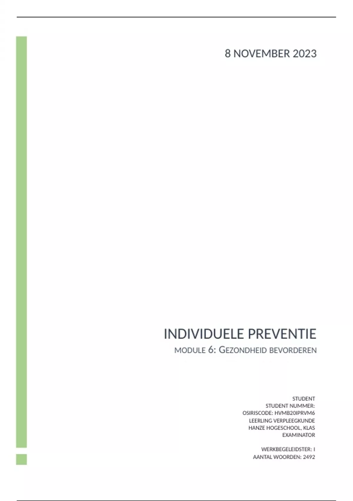 gezondheid. Dit verslag richt zich op individuele preventiebevordering.
