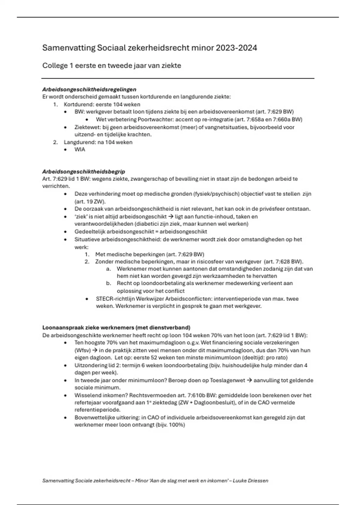 Samenvatting Sociaal zekerheidsrecht minor 2023-2024