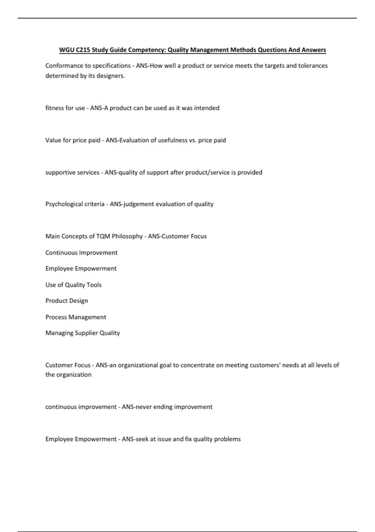 WGU C215 Study Guide Competency: Quality Management Methods Questions And Answers