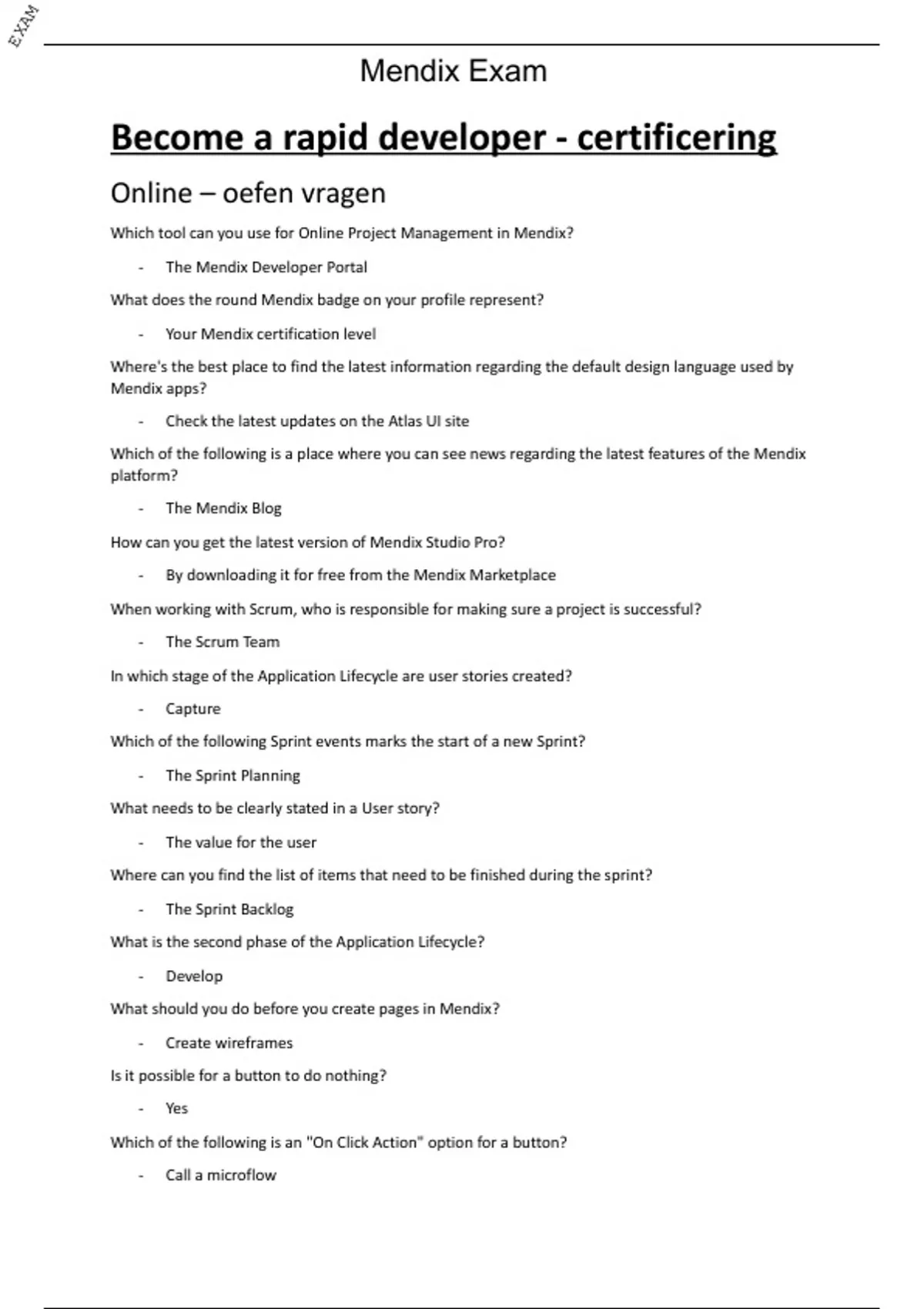 Mendix Exam
