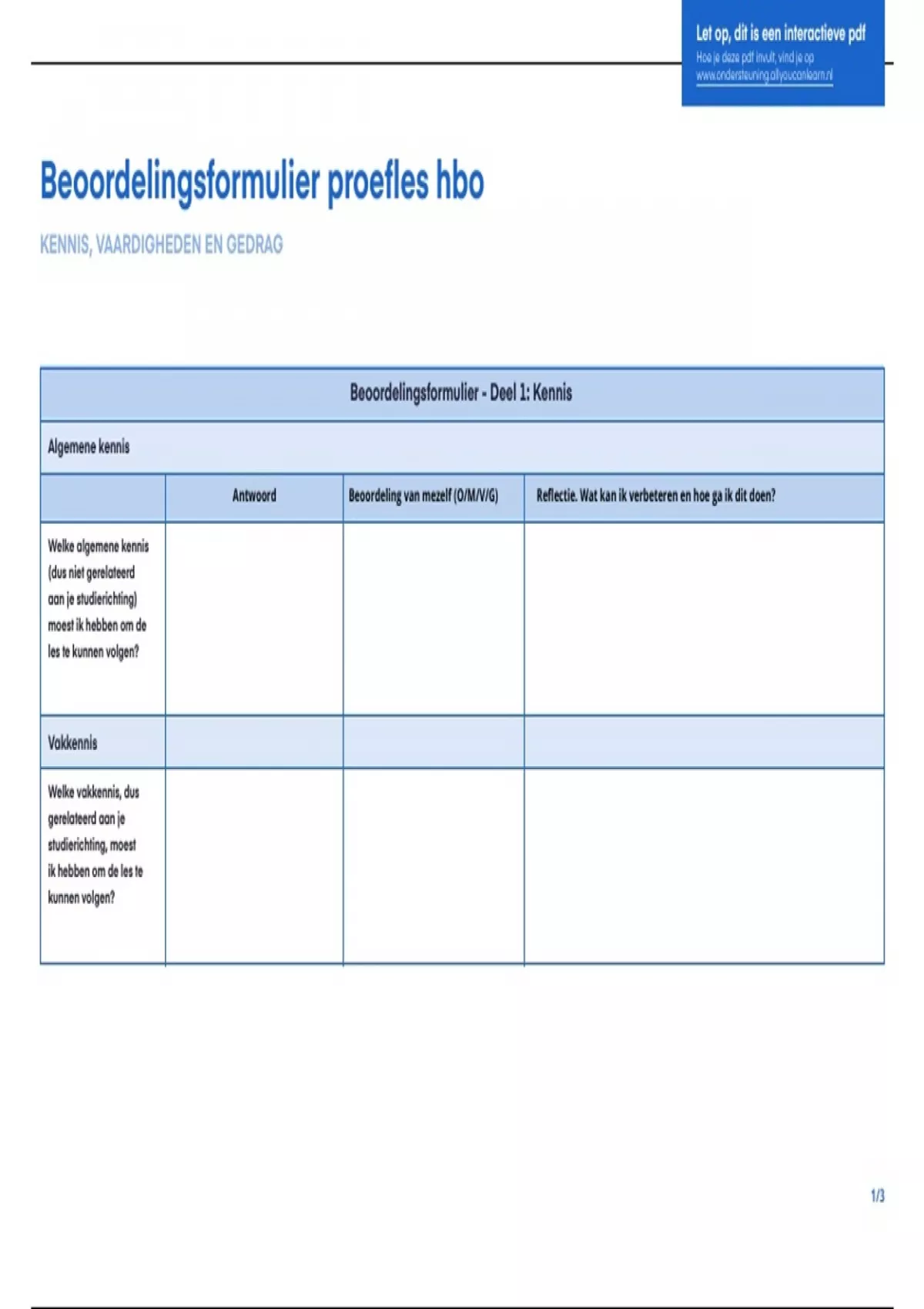 Beoordelingsformulier - Deel 1: Kennis