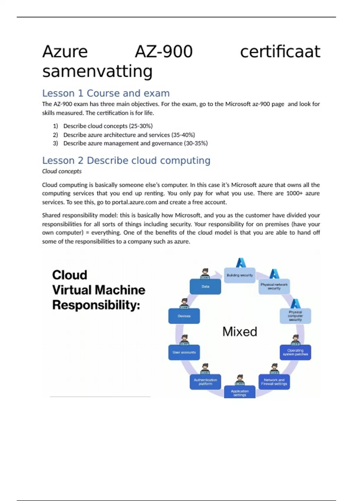 Shared responsibility model: this is basically how Microsoft, and you as the customer have divided your