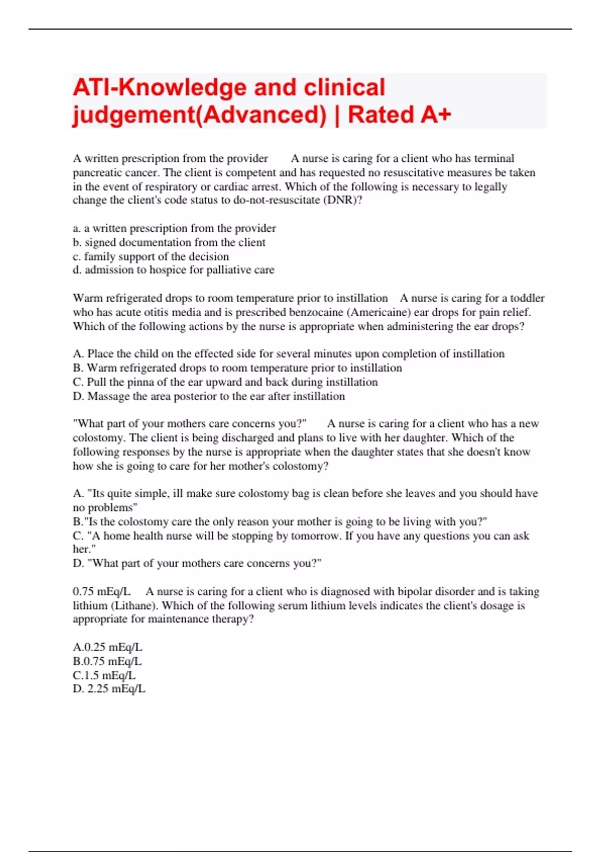 ATI-Knowledge and clinical judgement(Advanced) | Rated A+