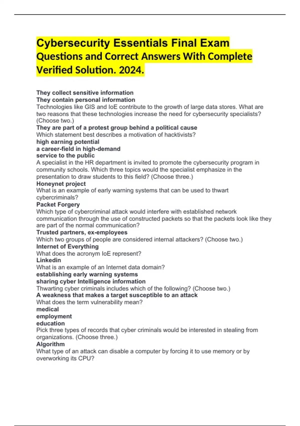 Questions and Correct Answers With Complete