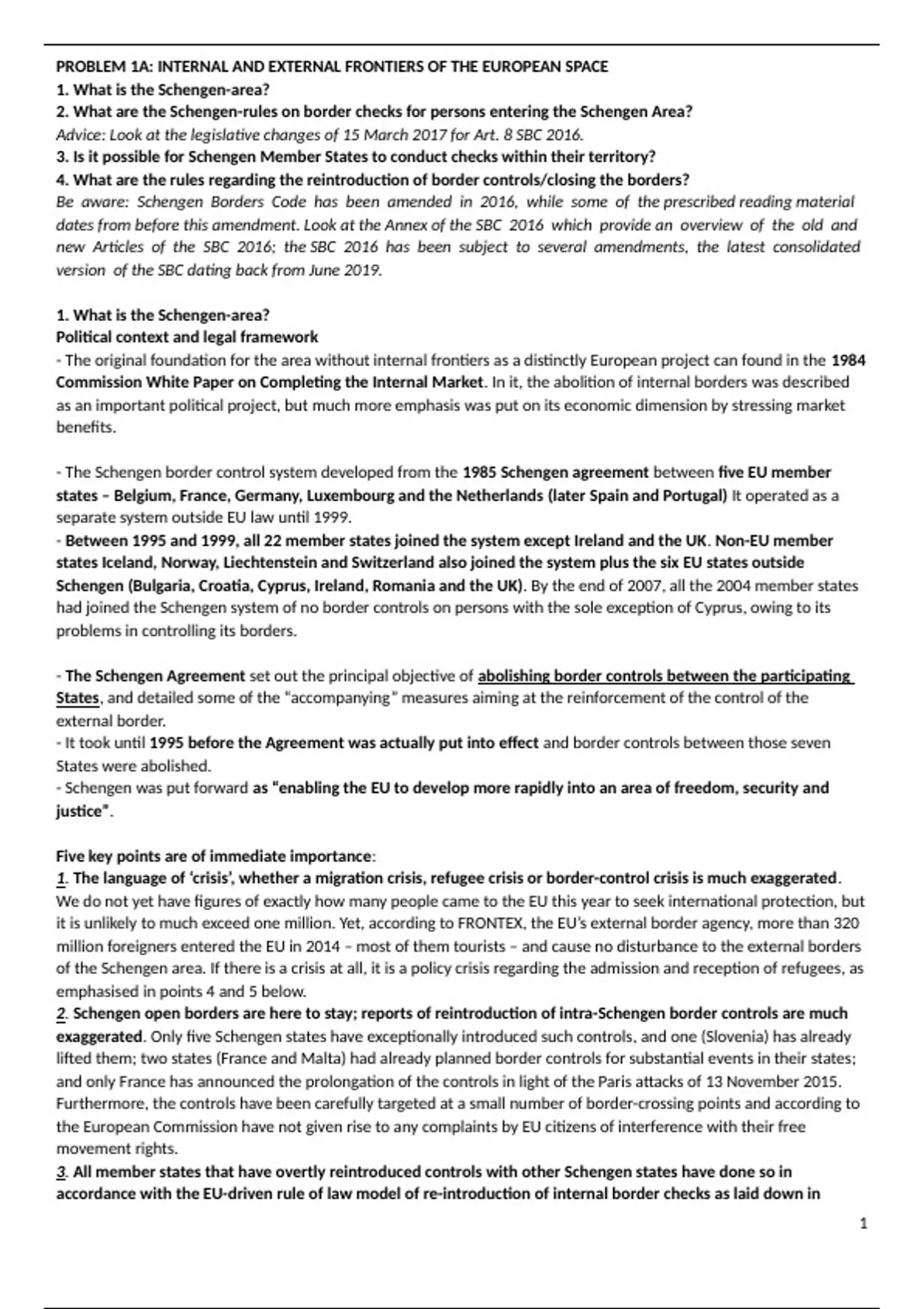 PROBLEM 1A: INTERNAL AND EXTERNAL FRONTIERS OF THE EUROPEAN SPACE