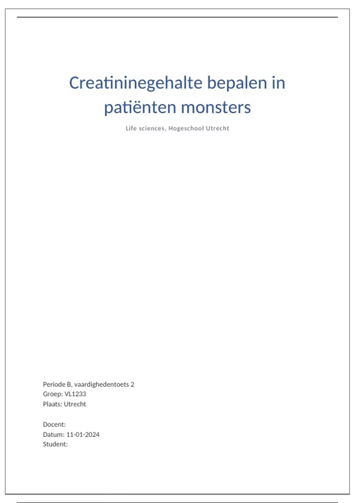 Verslag vaardigheden toets periode B - Creatinineklaring