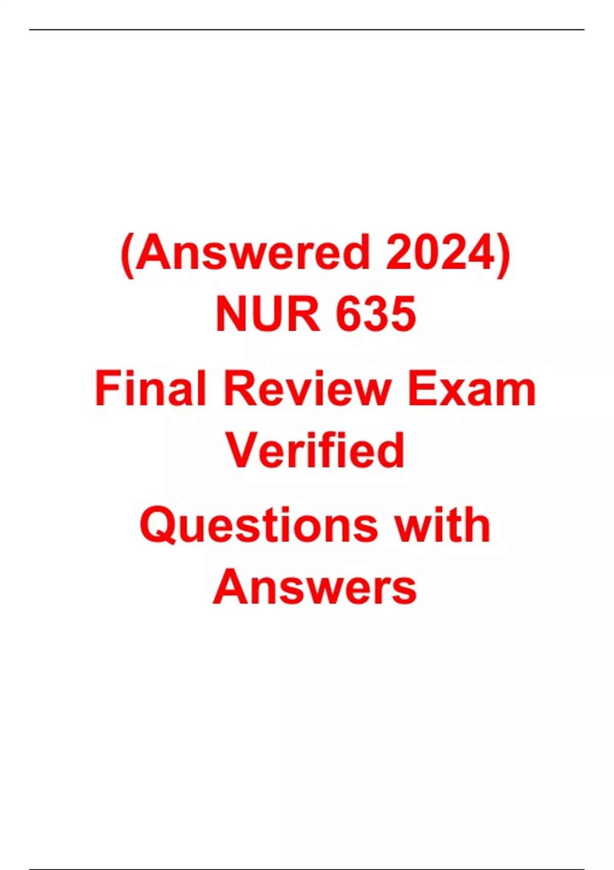 NUR 635 Final Review Exam Answered 2024 Verified Questions with Answers