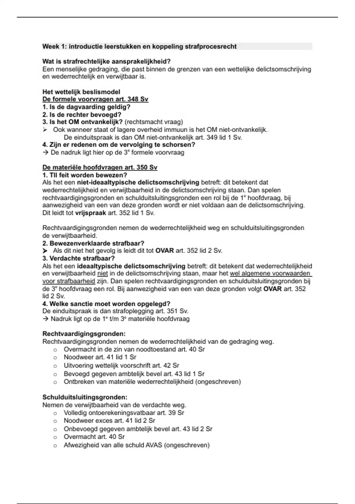 Week 1: introductie leerstukken en koppeling strafprocesrecht