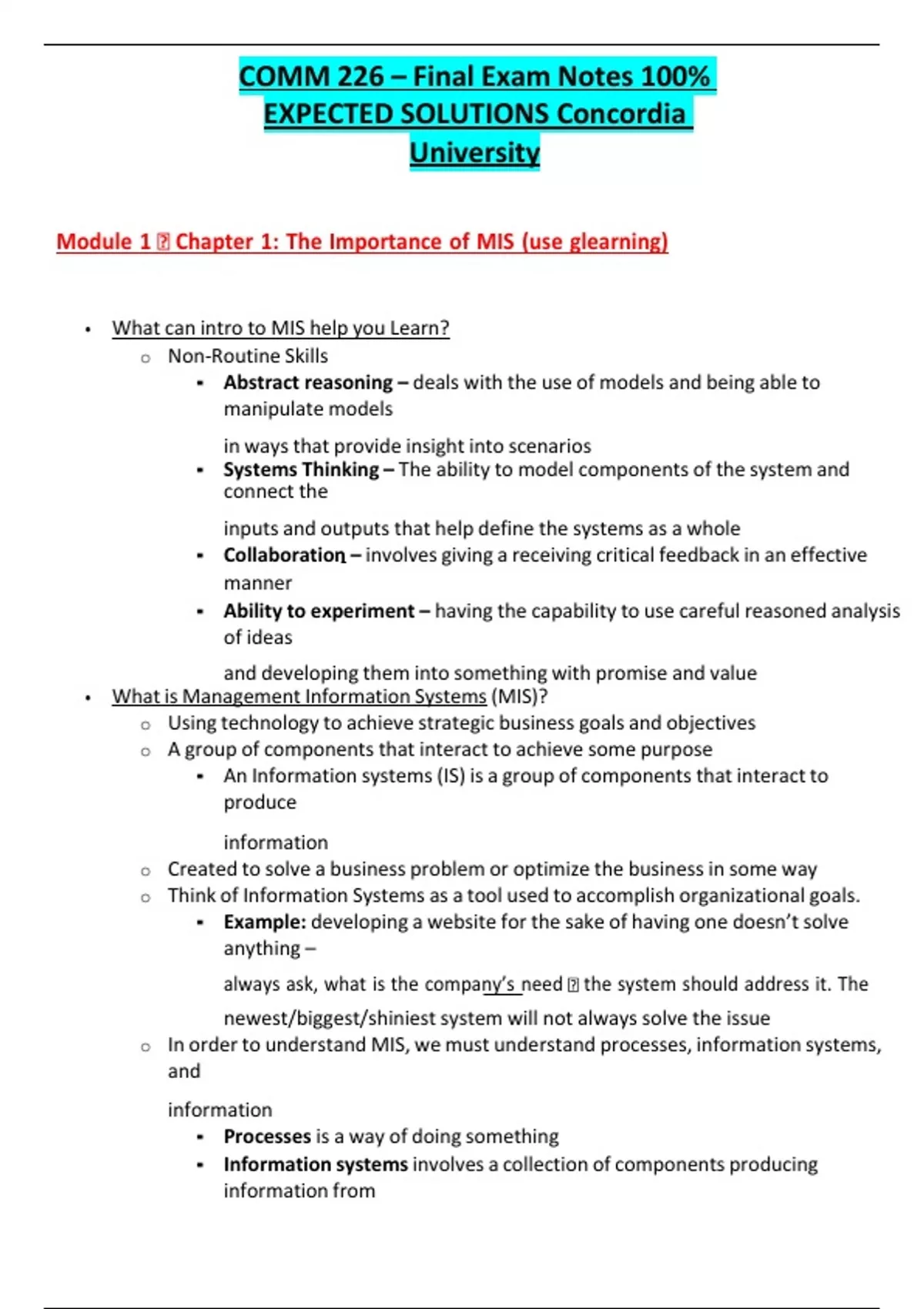 COMM 226 – Final Exam Notes 100% EXPECTED SOLUTIONS Concordia University.