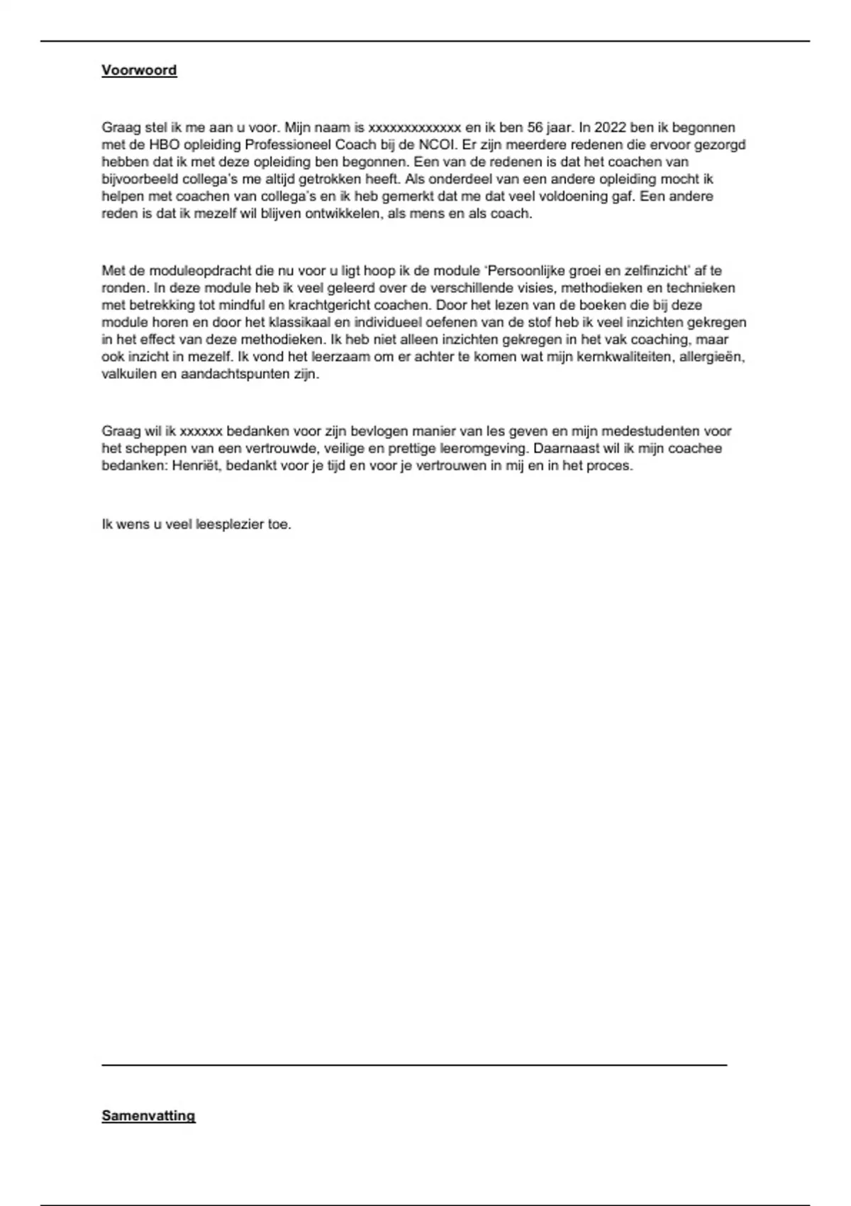Met de moduleopdracht die nu voor u ligt hoop ik de module ‘Persoonlijke groei en zelfinzicht’ af te
