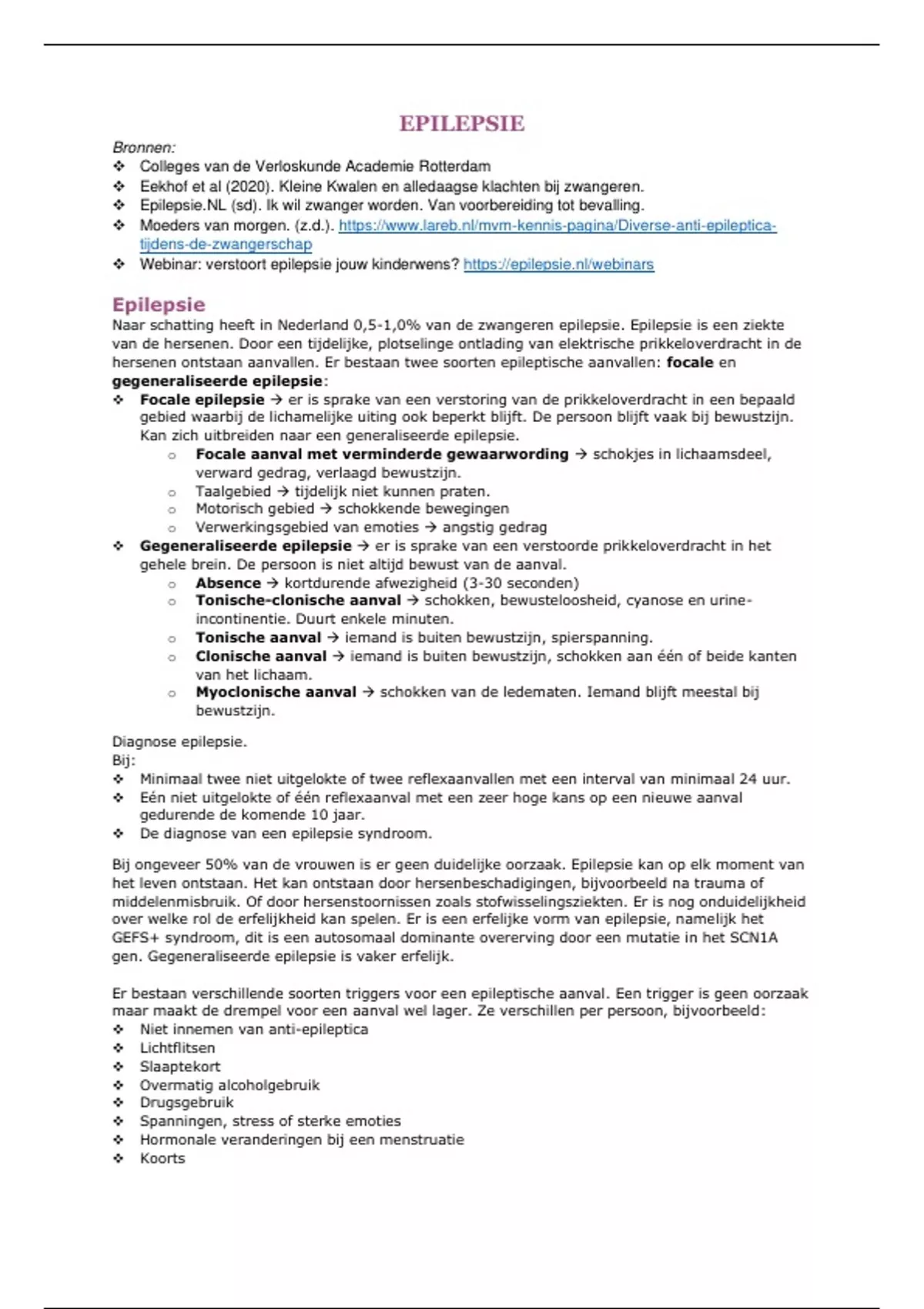Samenvatting: alles over EPILEPSIE en de zwangerschap - VAR jaar 3