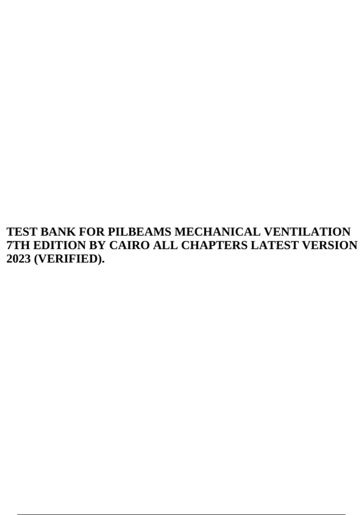 TEST BANK FOR PILBEAMS MECHANICAL VENTILATION 7TH EDITION BY CAIRO ALL CHAPTERS LATEST VERSION 2023 (VERIFIED).