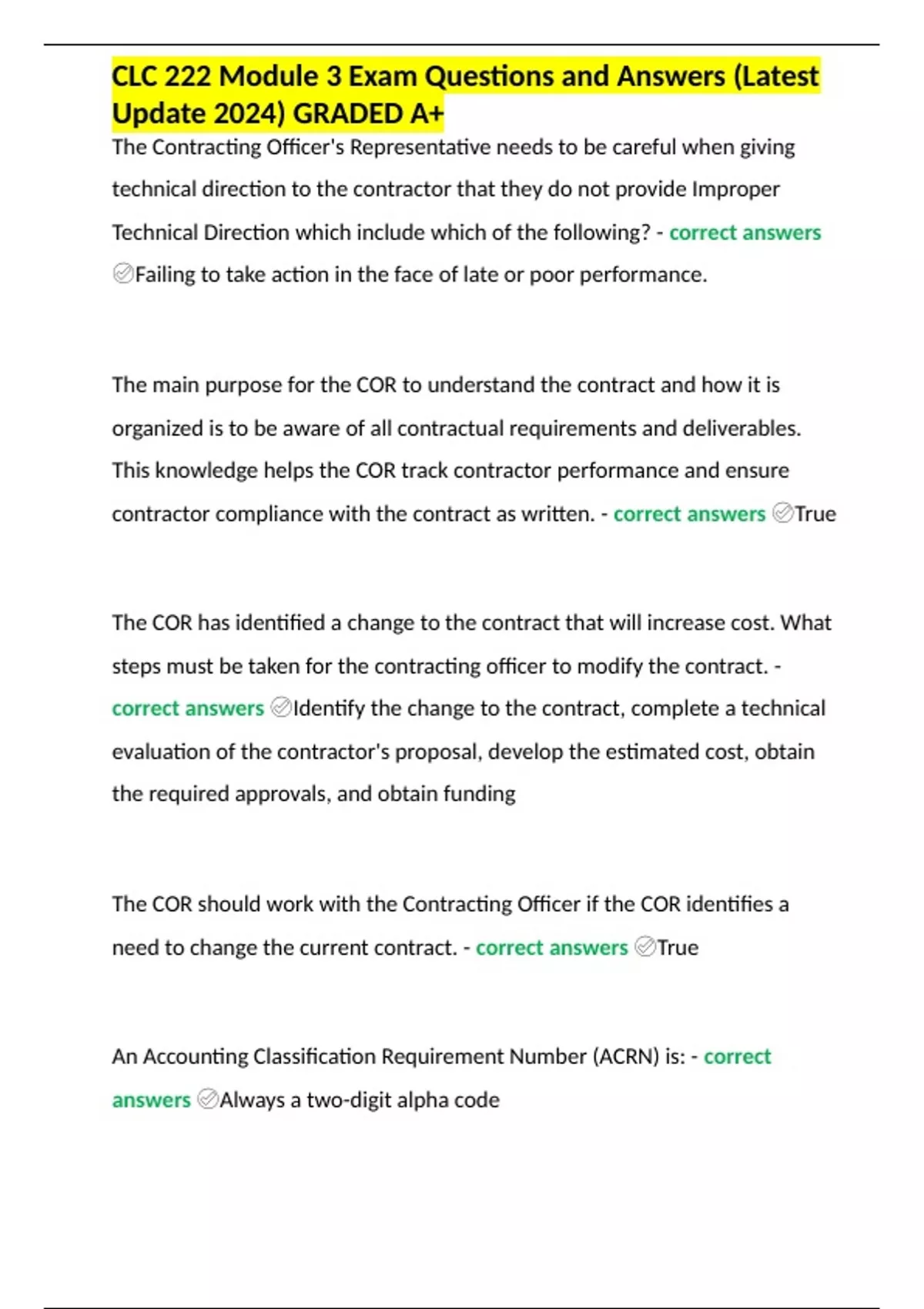 CLC 222 Module 3 Exam Questions and Answers (Latest Update 2024) GRADED A+