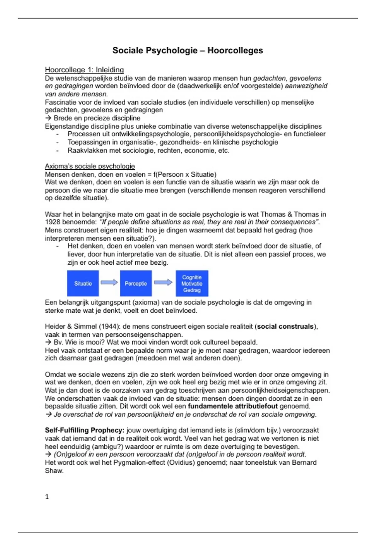 Samenvatting Hoorcolleges Sociale Psychologie