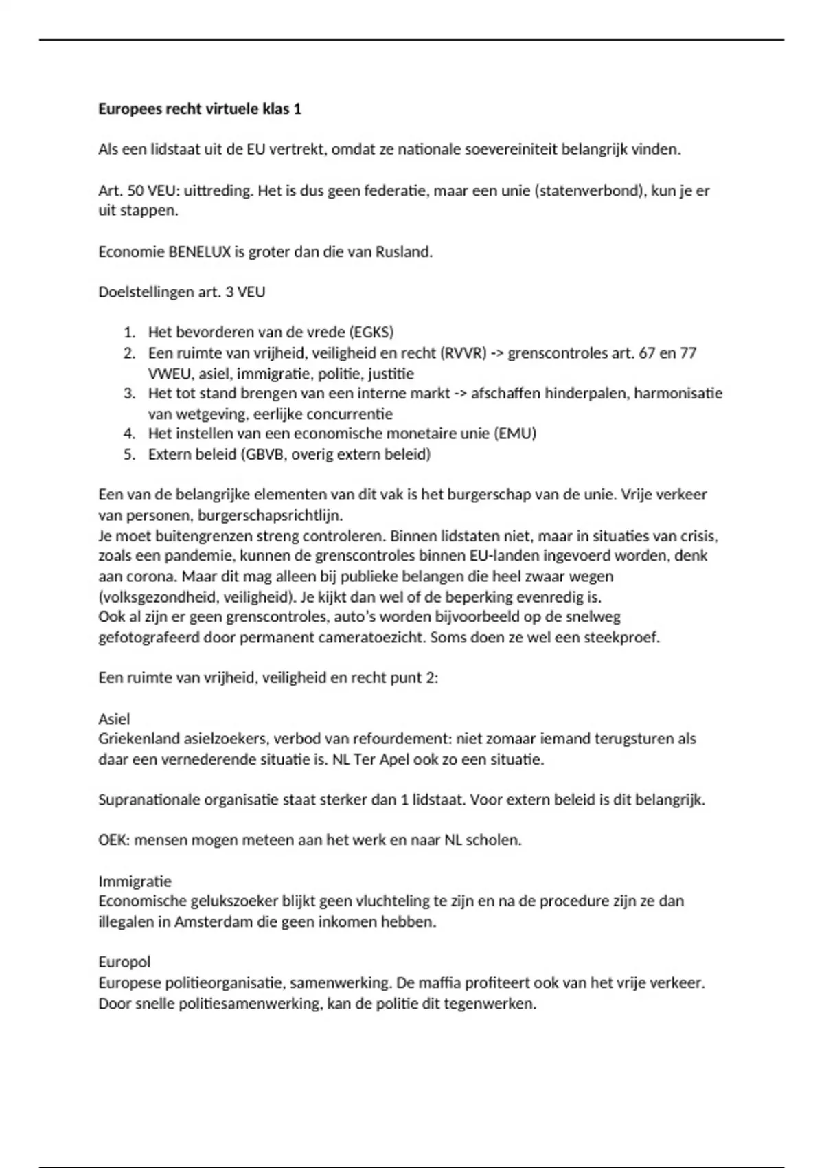 Samenvatting virtuele klassen Europees recht incl. alle leereenheden en behandelde jurisprudentie