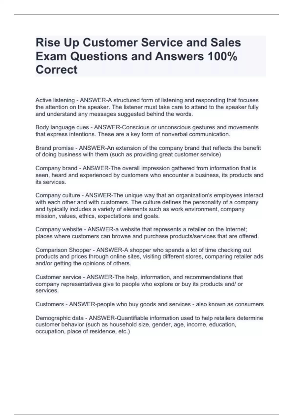 Brand promise - ANSWER-An extension of the company brand that reflects the benefit of doing business with them (such as providing great customer service)