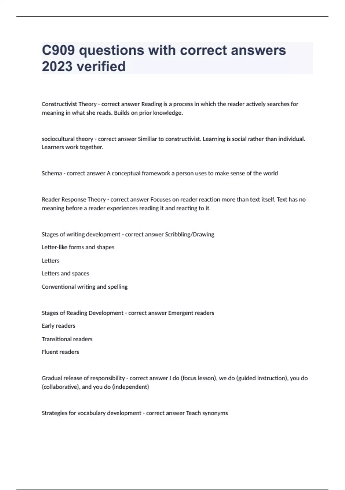 c909 questions with correct answers 2024 verified