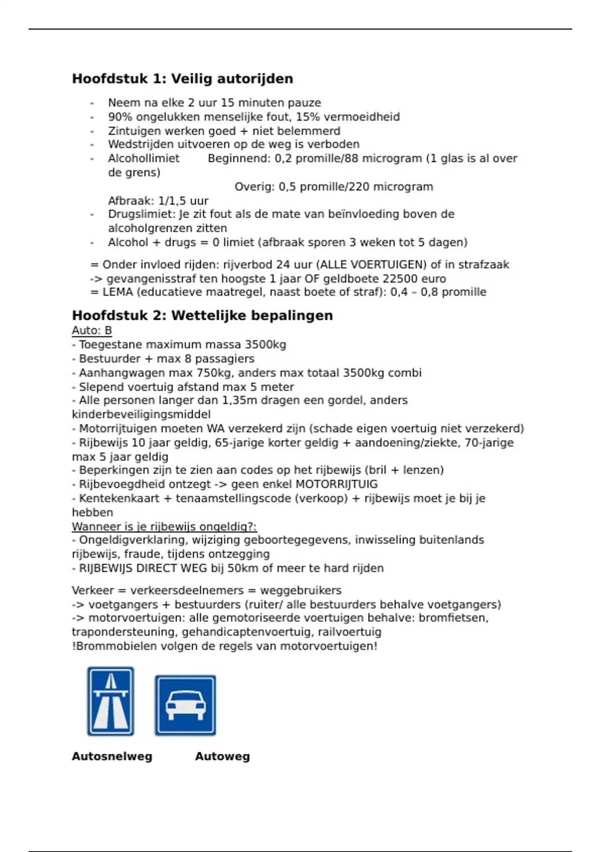Samenvatting Autotheorie Rijbewijs B- alle stof samengevat