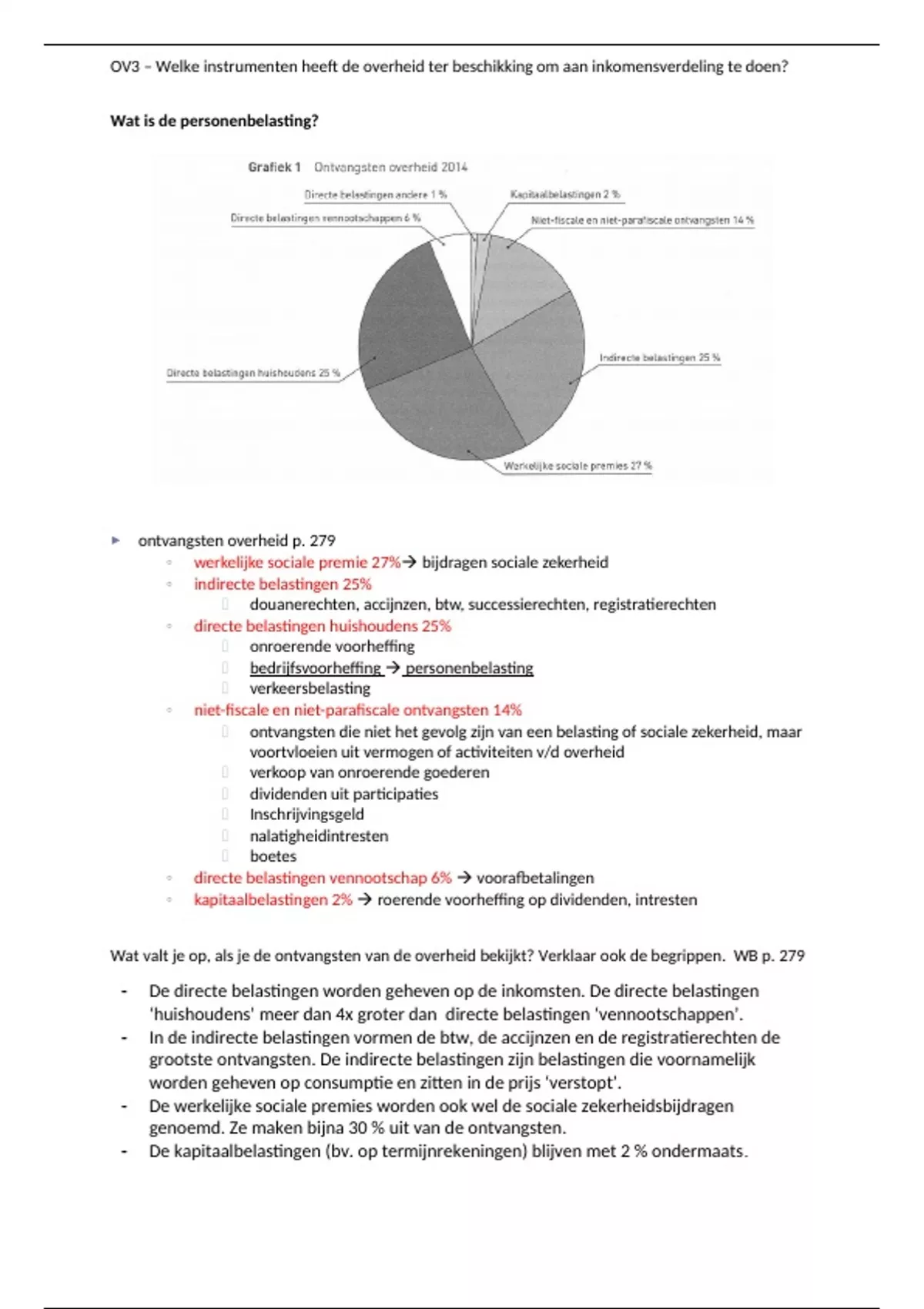 Wat valt je op, als je de ontvangsten van de overheid bekijkt? Verklaar ook de begrippen. WB p. 279