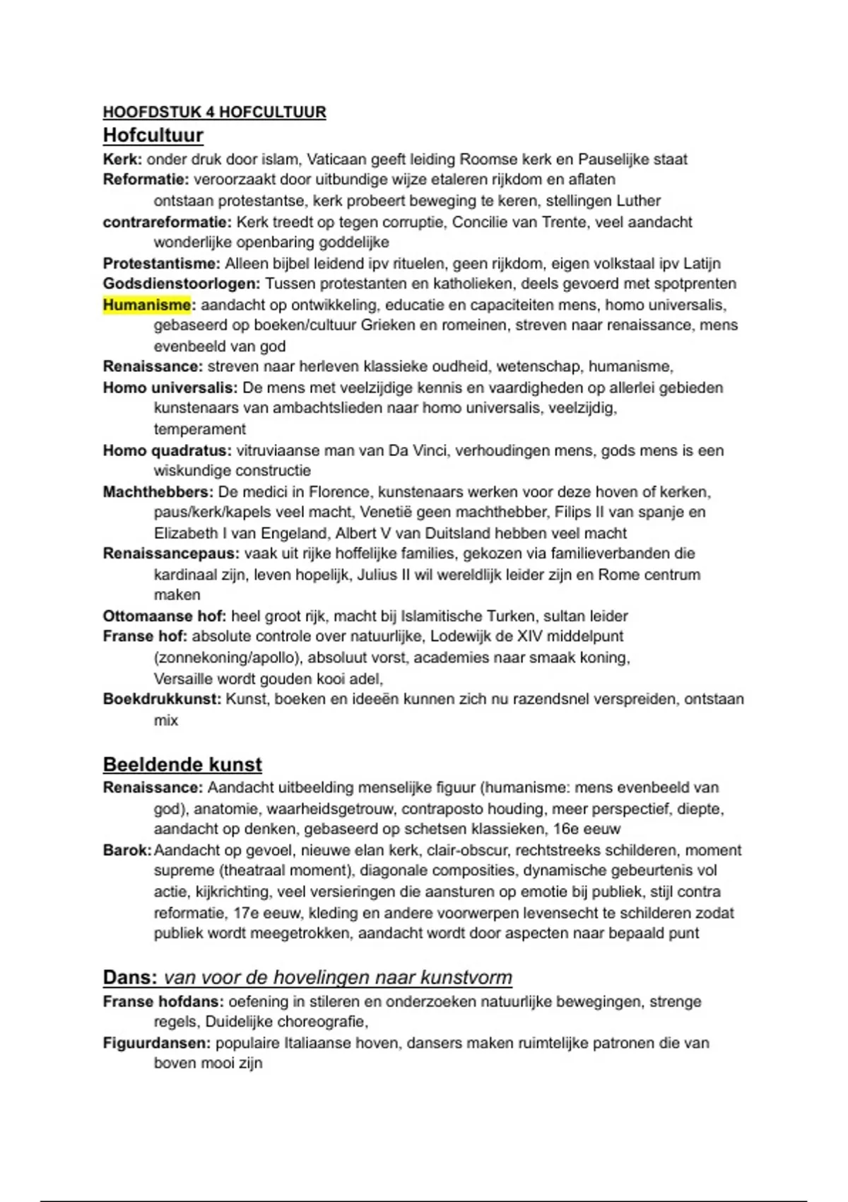 Hoofdstuk 4: hofcultuur, hoofdstuk 7: cultuur van romantiek & realisme, hoofdstuk 8: cultuur van he