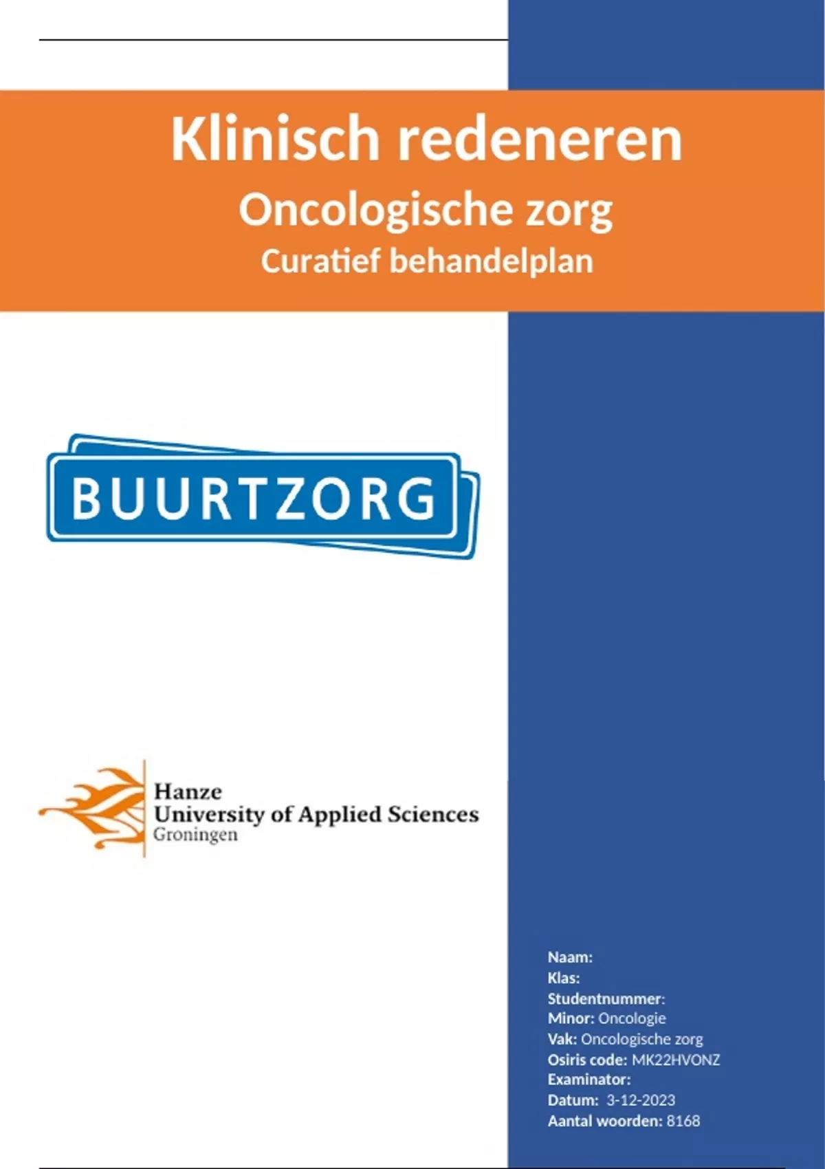 , Dit behandelplan is opgesteld als onderdeel van de minor oncologie en heeft betrekking tot