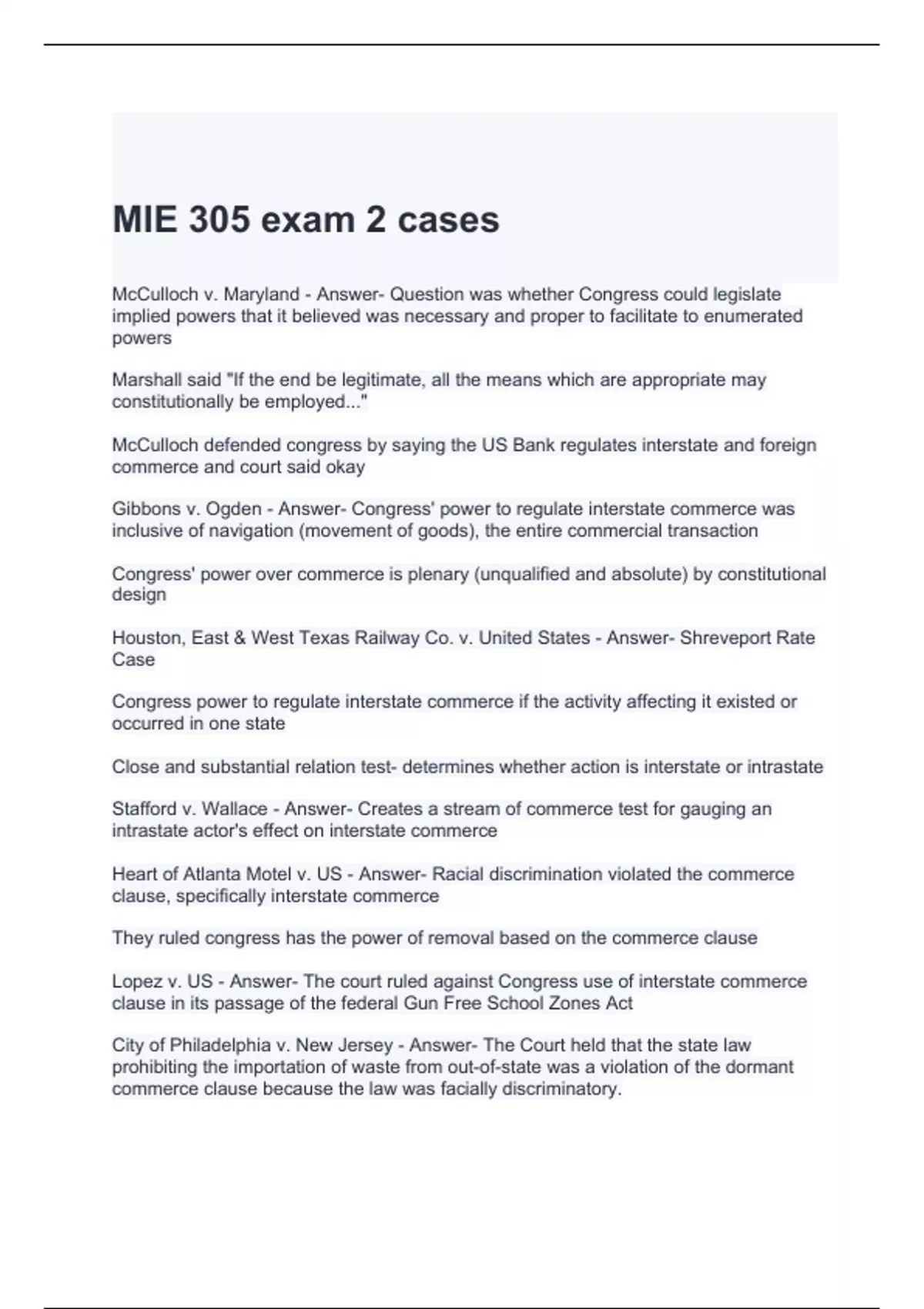 mie 305 exam 2 cases