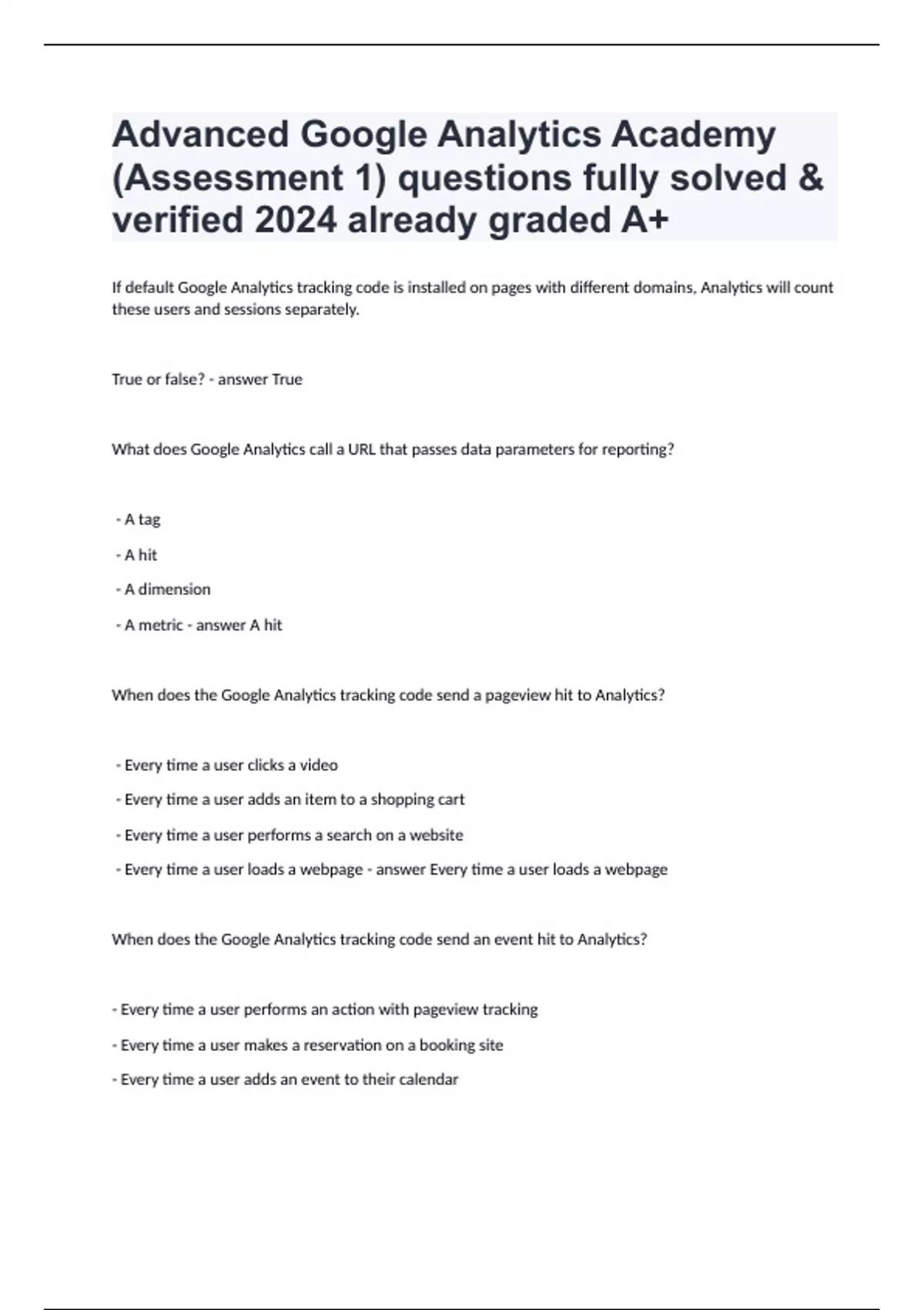 Advanced Google Analytics Academy (Assessment 1) questions fully solved & verified 2024