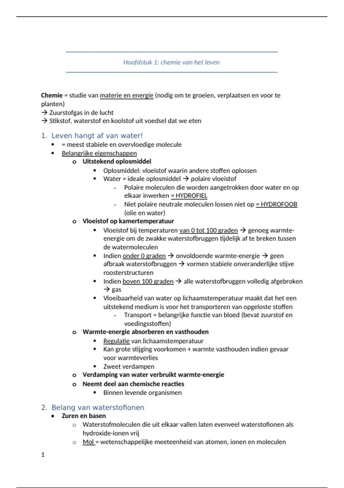 Hoofdstuk 1: chemie van het leven