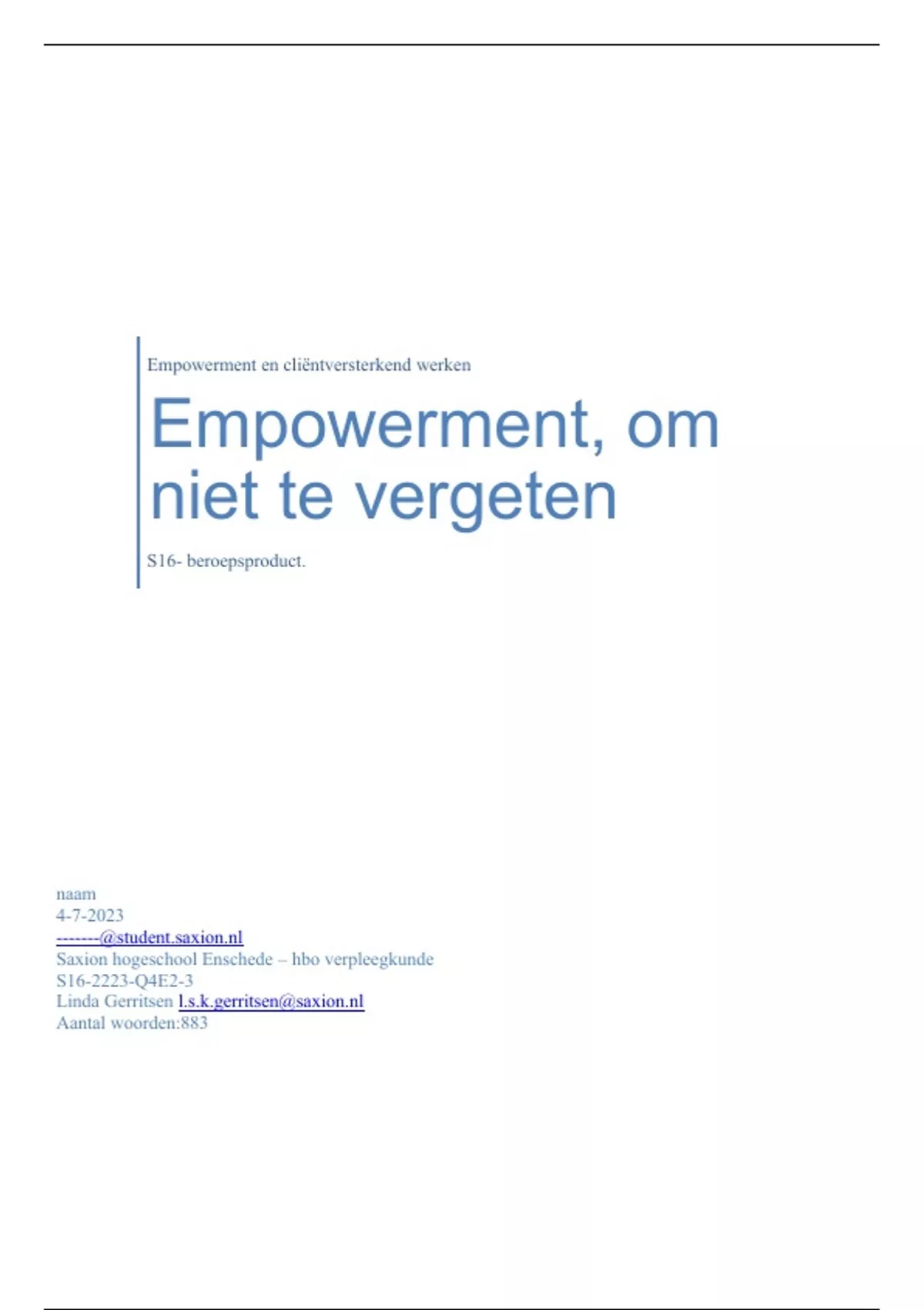 beroepsproduct van de s16 - empowerment, clientversterkend werken.