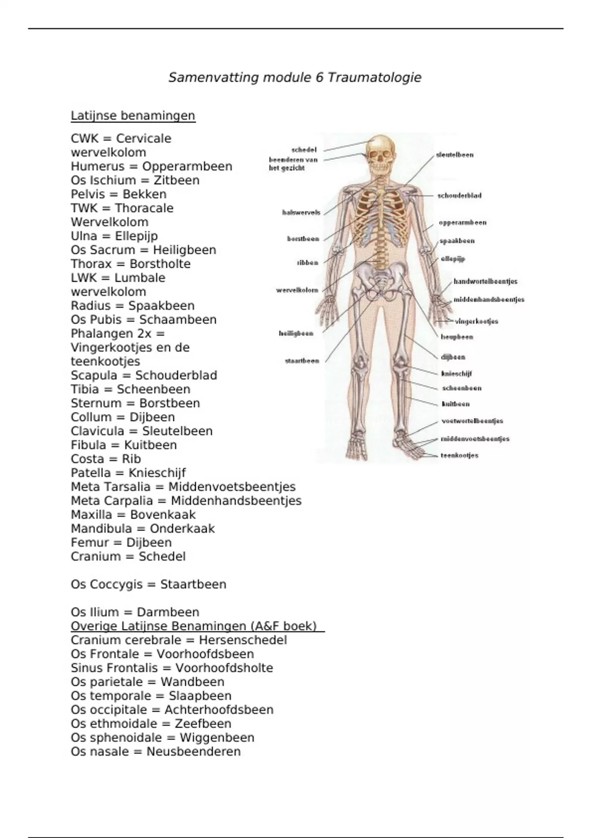 Dit is mijn samenvatting van de module traumatologie voor de opleiding 'doktersassistent'. Ik heb voor al mijn toetsen altijd voldoendes gehaald en ook veel tijd gestoken in het samenvatten. In deze samenvatting heb ik mij gehouden aan de gekregen kennen- en kunnenlijst.