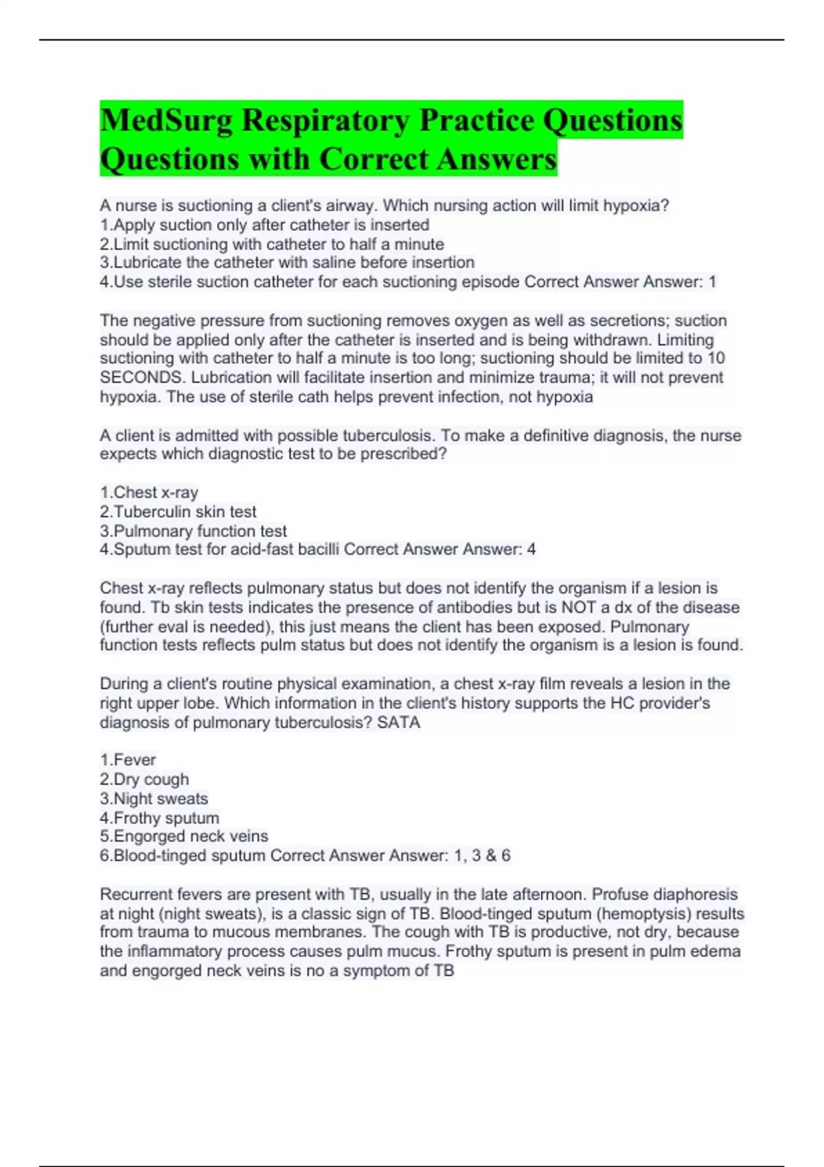 MedSurg Respiratory Practice Questions Questions with Correct Answers