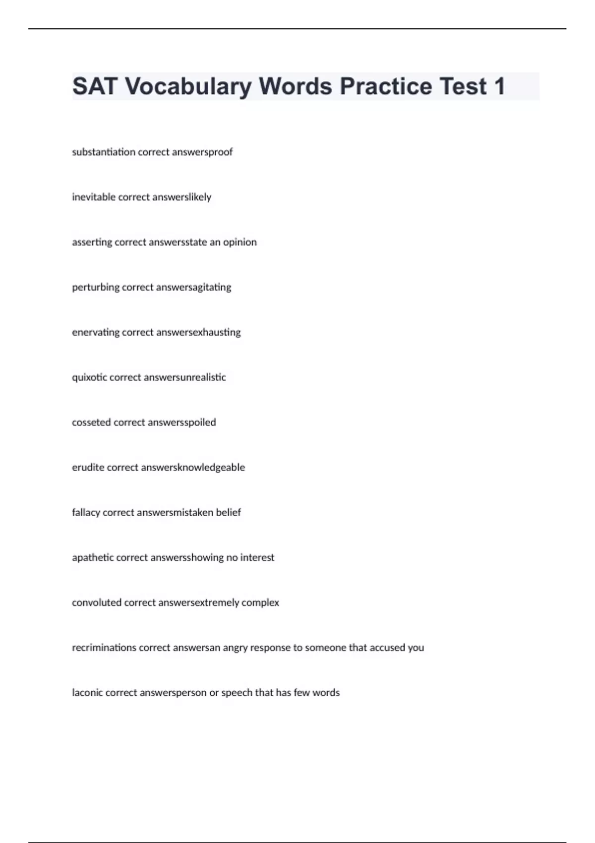 SAT Vocabulary Words Practice Test 1 2024 with verified solutions
