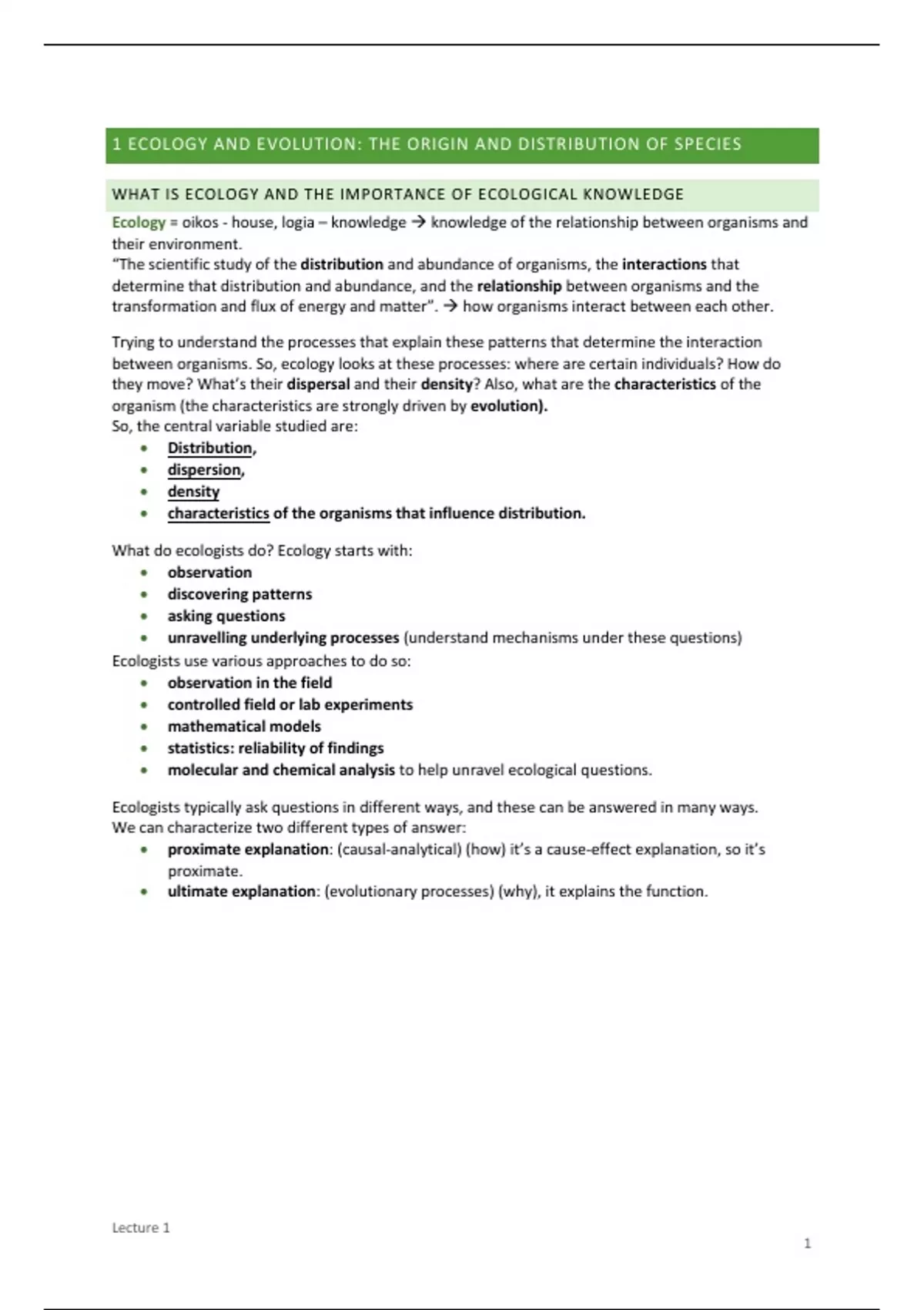 1 ECOLOGY AND EVOLUTION: THE ORIGIN AND DISTRIBUTION OF SPECIES