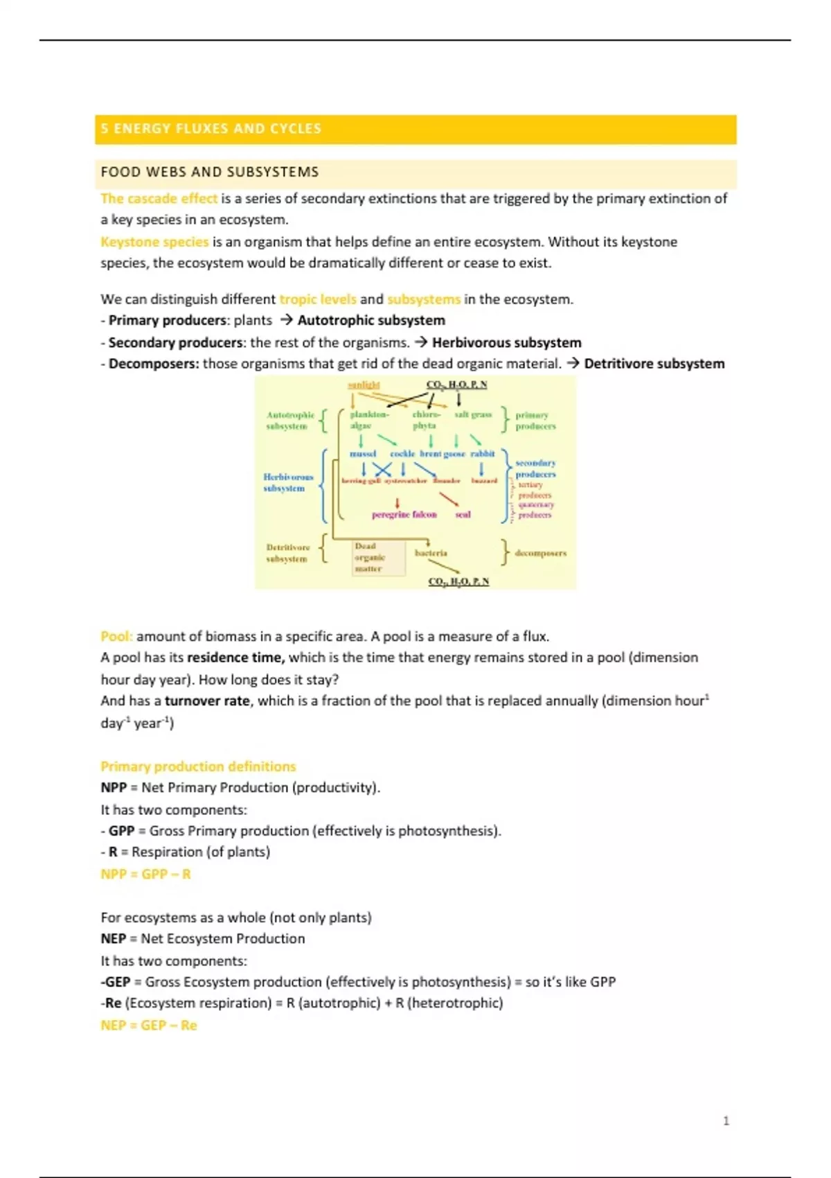 Pool: amount of biomass in a specific area. A pool is a measure of a flux.