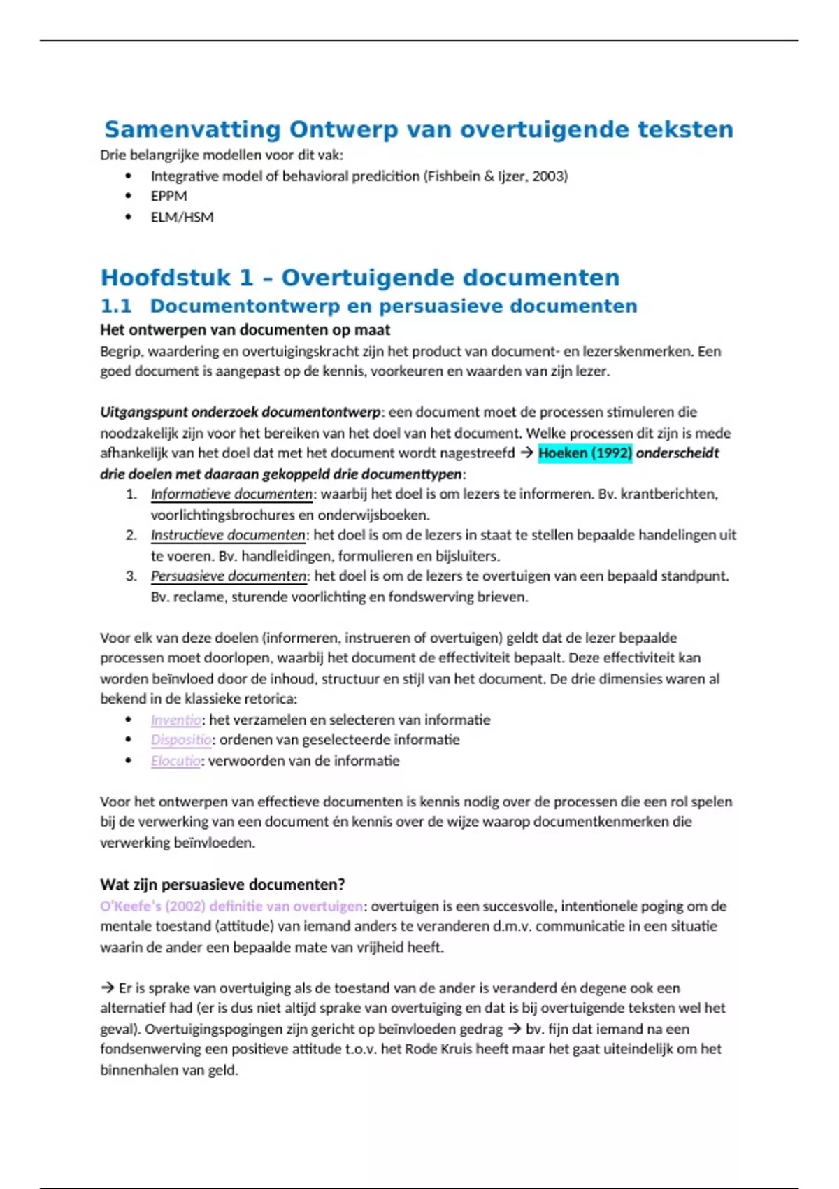 afhankelijk van het doel dat met het document wordt nagestreefd Hoeken (1992) onderscheidt