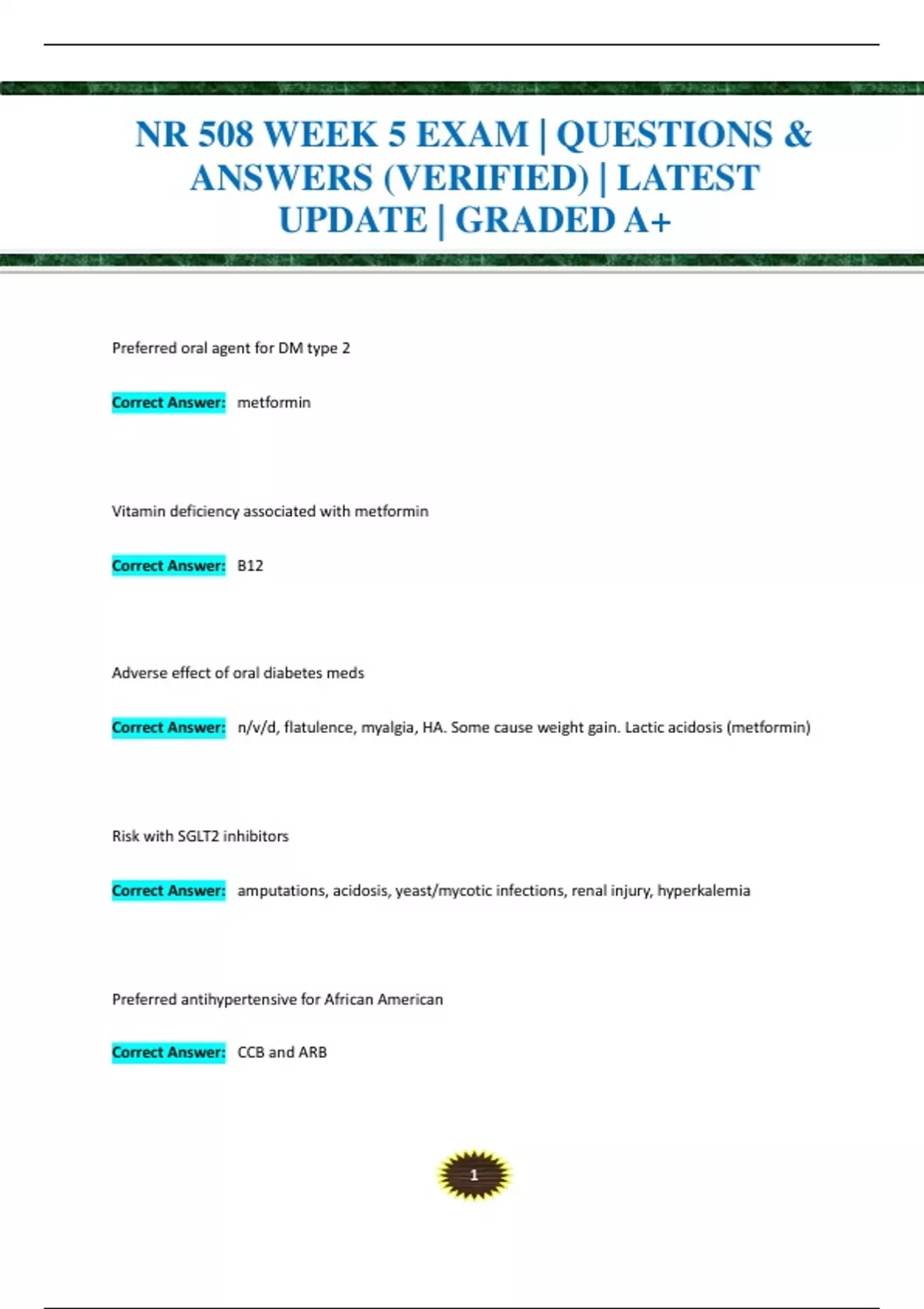 NR 508 WEEK 5 EXAM | QUESTIONS & ANSWERS (VERIFIED) | LATEST UPDATE | GRADED A+NR 508 WEEK 5 EXAM | QUESTIONS & ANSWERS (VERIFIED) | LATEST UPDATE | GRADED A+