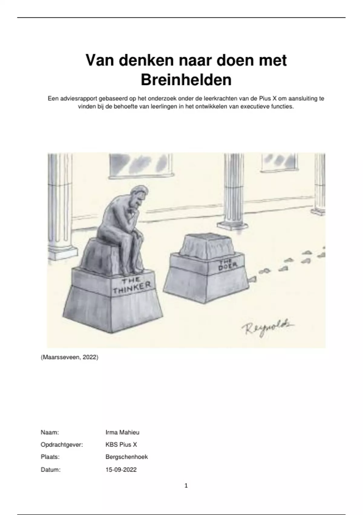 Voor u ligt het adviesrapport van denken naar doen met Breinhelden. Een onderzoek onder de leerkrachten