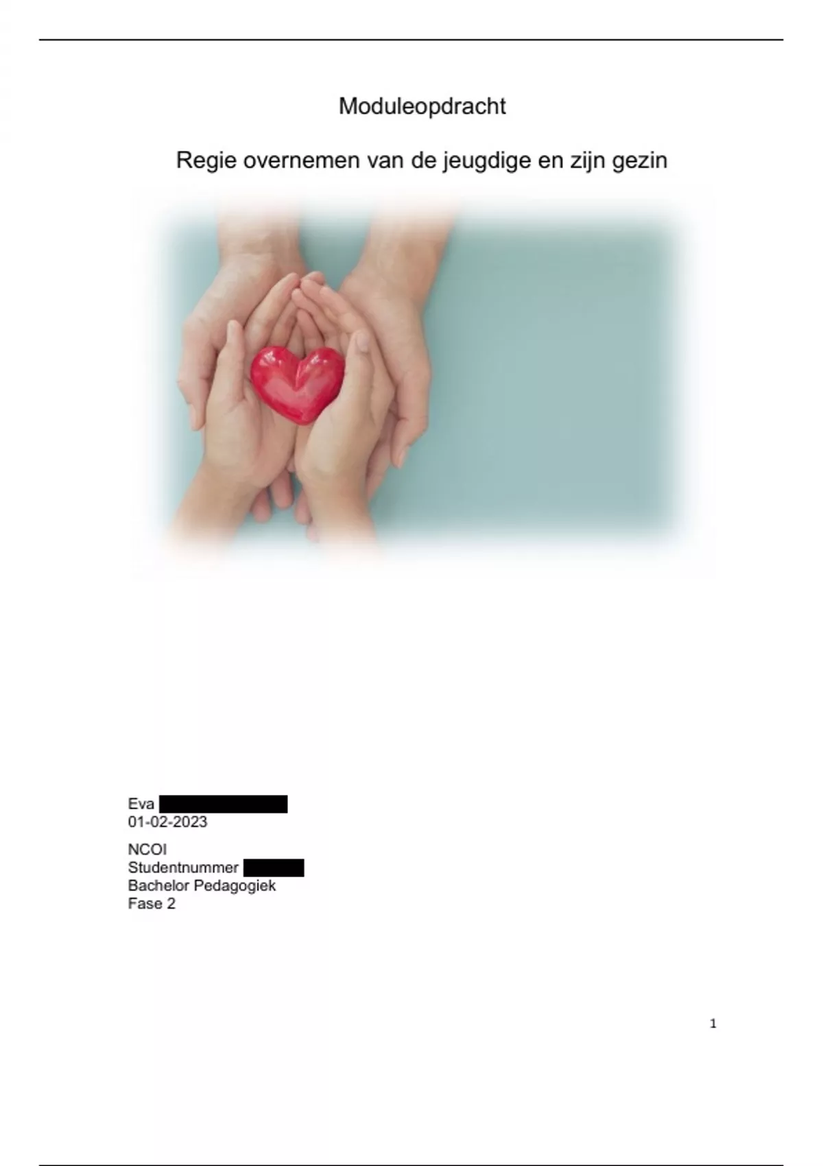 Moduleopdracht regie overnemen van de jeugdige en zijn gezin, beoordeeld met een 9!