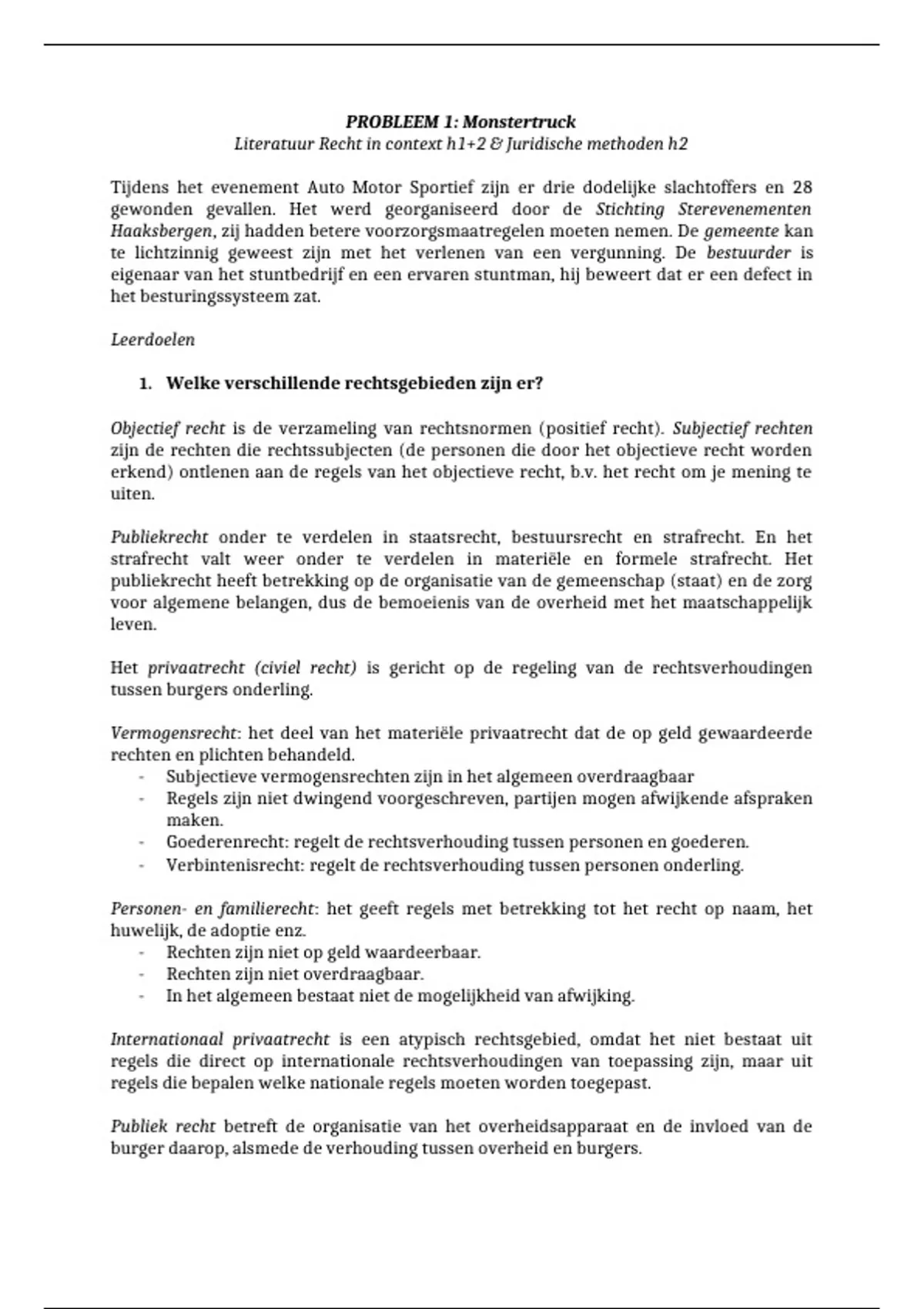 Uitwerkingen van de leerdoelen van probleem 1 - Inleiding rechtswetenschap. - 2023/2024
